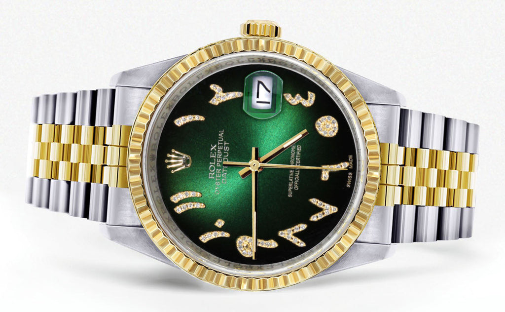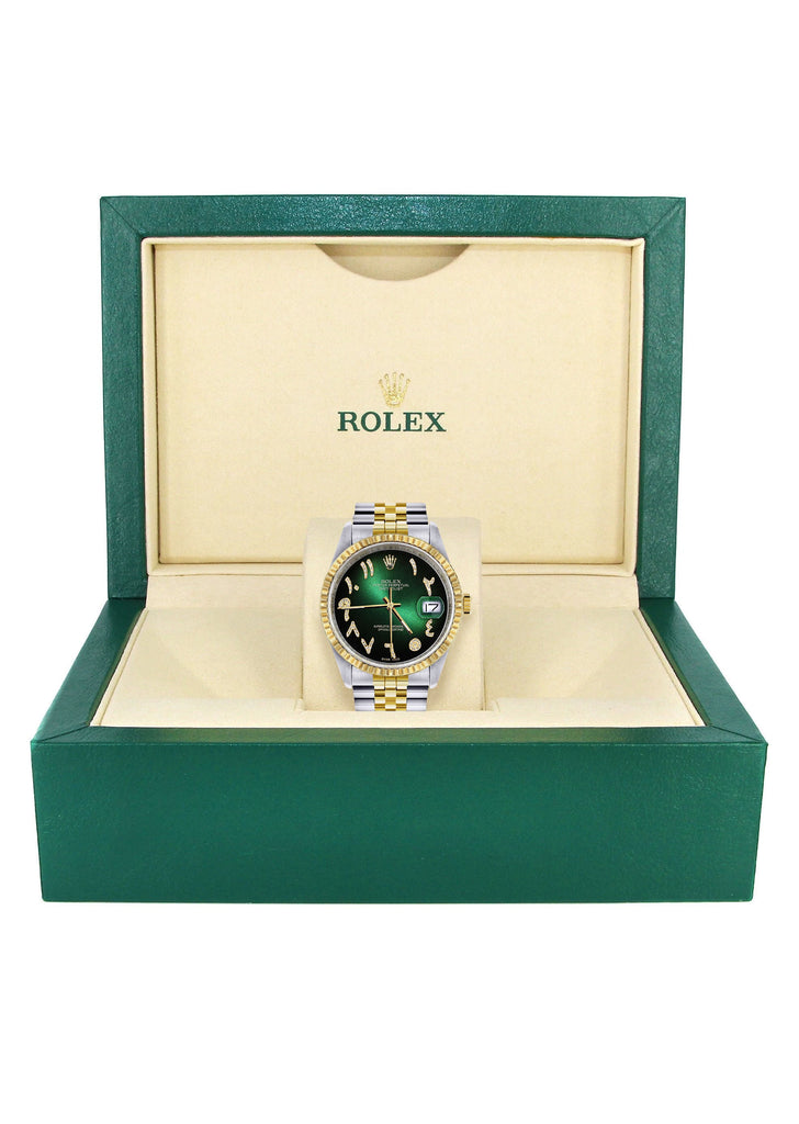 Womens Rolex Datejust Watch 16233 Two Tone | 36Mm | Green Black Arabic Dial | Fluted Bezel | Jubilee Band