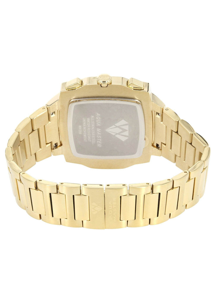 Designer Aquamaster Yellow Gold Tone Diamond Watch With Approximately 0.28 Carats Of Vs Quality Diamonds. This Watch Comes With A Steel Band Which Can Be Adjusted To Any Size For Comfort.